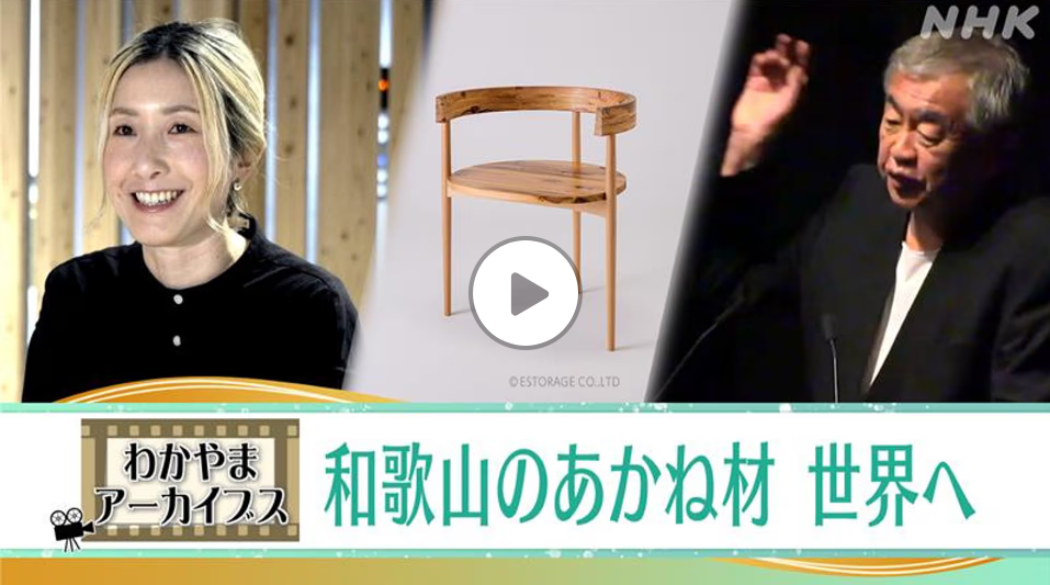 Les archives de NHK Wakayama ont diffusé des segments tels que "Le bois Akane de Wakayama vers le monde" et "Des utilisations élargies du bois endommagé par les insectes". Le bois endommagé par les insectes, appelé Bois Akane, constitue depuis longtemps un défi dans la région de Wakayama. Dans ce contexte, un groupe de Tanabe et l'architecte Kengo Kuma travaillent à la création de produits tels que des tables et des chaises en Bois Akane. L'émission a couvert à la fois la propagation des dommages et les efforts pour revaloriser ce matériau.